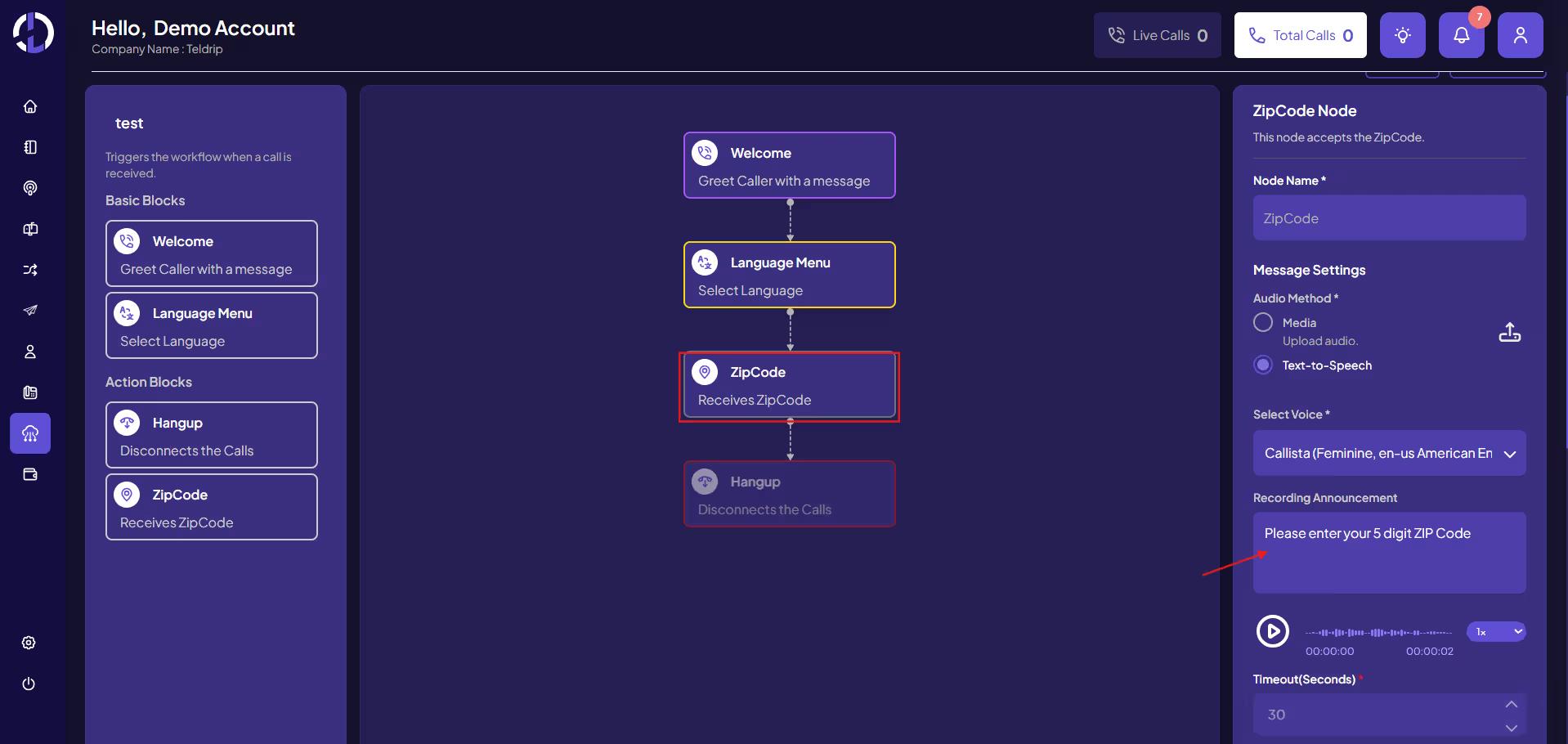 → Calls from ZIP Code 90001 will not be routed even though California is selected.